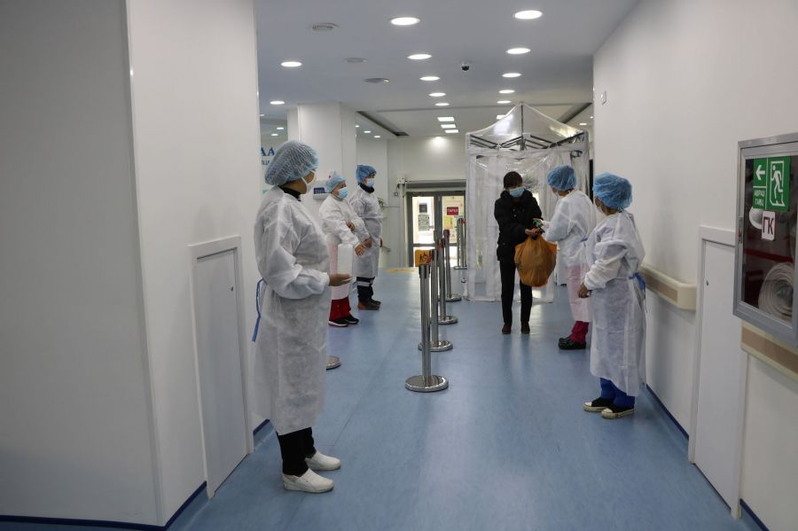 Эмнэлгийн төв үүдэн хэсэг, Зөвлөх поликлиник, Яаралтай тусламжийн тасгууд үүдний хэсгүүддээ мананцар үүсгэж 1-2 секундэнд ариутгах ууран хөшиг, зайнаас халуун хэмжиж, амны хаалтны хэрэглээг хянах камер, хяналтын дэлгэцээр хянан, эмчлүүлэгч, үйлчлүүлэгчийн гарыг халдваргүйжүүлж байгаа.