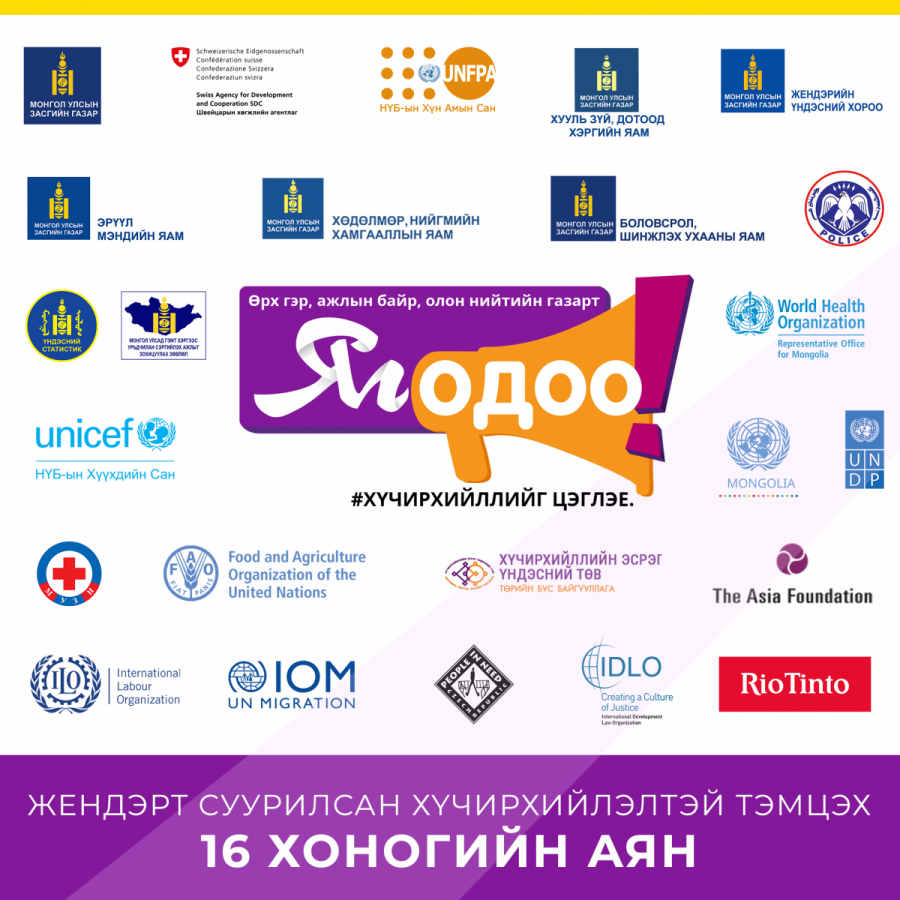 Хөдөлмөр, нийгмийн хамгааллын яам “Хүчирхийлэлгүй нийгэм” бий болгоход хүн бүрийн үүрэг оролцоо чухал учир гэр бүл, ажлын байр, олон нийтийн газарт “Хүчирхийллийг яг одоо цэглэе” 16 хоногийн аянд нэгдэхийг уриалав.