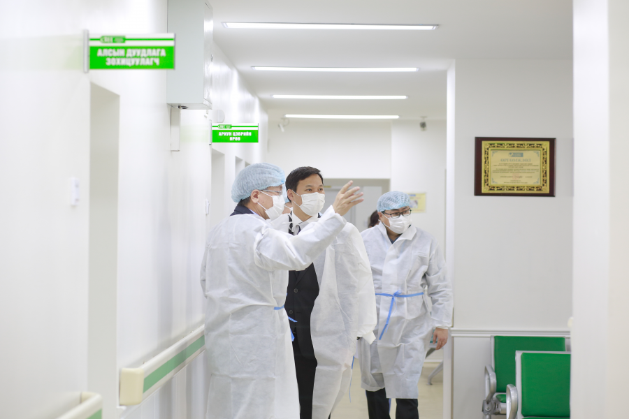 Эрүүл мэндийн сайд болон ДЭМБ-ын суурин төлөөлөгч Сергей Диордица нар Хүүхдийн яаралтай тусламжийн тасаг, эрчимт эмчилгээ, амьсгалын замын тасгаар орж нөхцөл байдалтай танилцаж, шаардлагатай арга хэмжээ цаг алдалгүй авахаар болсон юм.