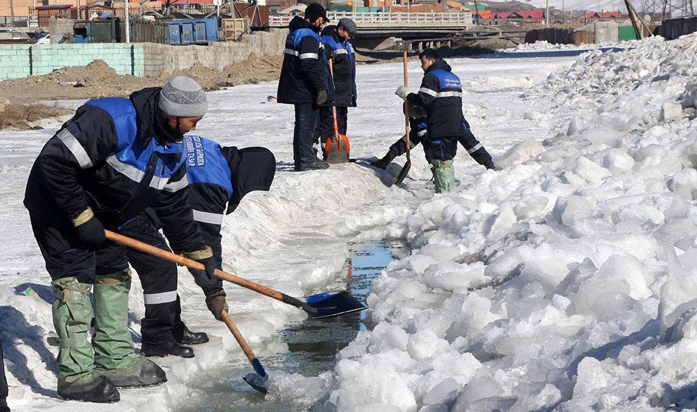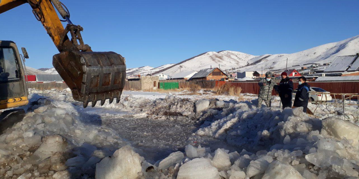 Шуурхай бригад хоёр эксковатор, хүн хүчтэйгээр ажилдаа орж 400мм голчтой суваг татах, мөсийг доош 1м орчим буталж, сувагчлах арга хэмжээ авахаар ажиллаж байна.