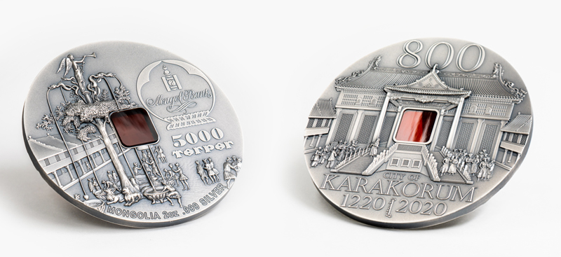 Монголбанкны Эрдэнэсийн сангаас Монгол Улсын болон олон улсын ач холбогдол бүхий тэмдэглэлт ой зэрэг онцгой чухал үйл явдлыг тохиолдуулан алт, мөнгө, зэс дурсгалын зоос эрхлэн гаргадаг. Энэ онд Их Монгол Улсын нийслэл Хархорум хот байгуулагдсаны 800 жилийн ойг тохиолдуулан “Хархорум 800 жил” 2 унцын 999 сорьцтой мөнгөн зоосыг шинээр гаргаад байна. Тус дурсгалын зоосыг хамгийн сүүлийн үеийн Smartminting технологиор урлаж, зоосны голд шилэн шигтгээ суулгасан байна.