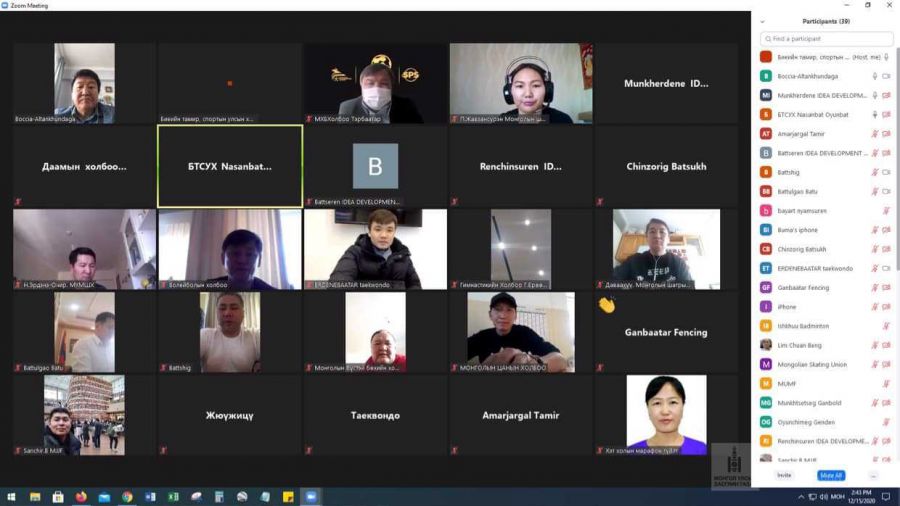 Энэ удаагийн спорт холбоодын эхний ээлжийн цахим сургалтанд нийт 31 спорт холбооны Ерөнхий нарийн бичгийн дарга нар болон админуудаас бүрдсэн 41 хүн оролцлоо.
