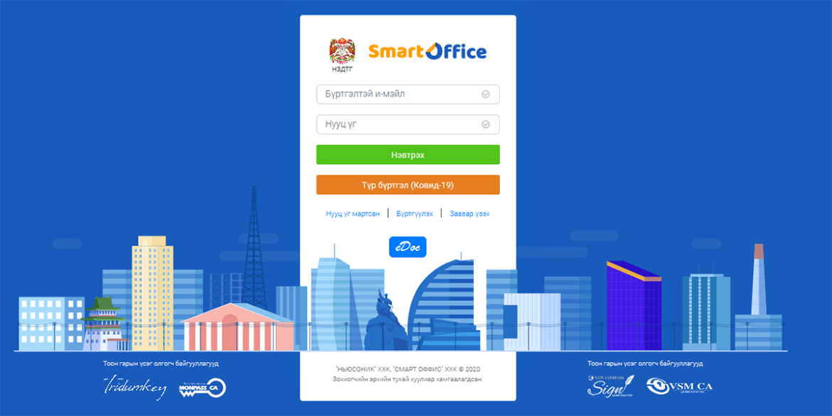 Дээрх нөхцөлийг бүрдүүлж Нийслэлийн Мэдээлэл, технологийн газар, Нийслэлийн Архивын газартай хамтран хэрэгжүүлж буй төслийн хүрээнд 2020 оны 12 дугаар сарын 10-ны өдрөөс эхлэн нийслэлийн хэмжээнд төр, хувийн хэвшлийн байгууллагын албан бичгийг https://smartoffice.mn/ системээр дамжуулан цахим хэлбэрээр солилцож байна.