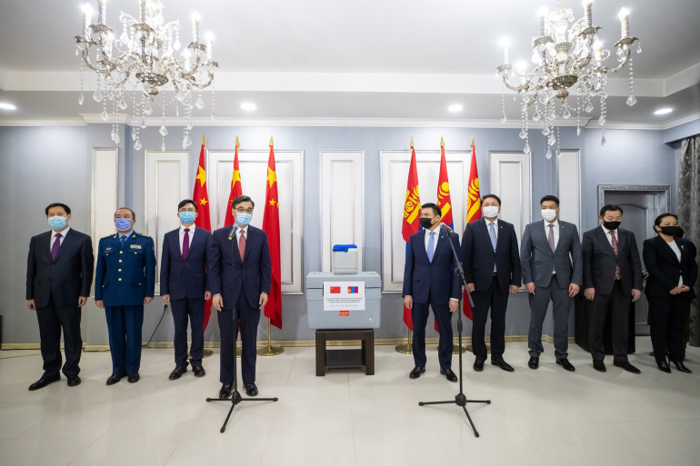 Монгол Улс хөрш орон БНХАУ-аас КОВИД-19 халдварт цар тахлын эсрэг Синофарм компанийн үйлдвэрлэсэн дархлаажуулалтын 300 мянган тун вакциныг хүлээж авлаа. Тус 150 мян/хүн тун вакциныг хүлээн авах ёслолын ажиллагаанд Монгол Улсын Шадар сайд, Улсын онцгой комиссын дарга С.Амарсайхан, Эрүүл мэндийн сайд С.Энхболд, Батлан хамгаалахын сайд Г.Сайханбаяр, Гадаад харилцааны яамны Төрийн нарийн бичгийн дарга Н.Анхбаяр, БНХАУ-аас Монгол Улсад суугаа Элчин сайд Чай Вэньруй зэрэг албаны хүмүүс оролцов.