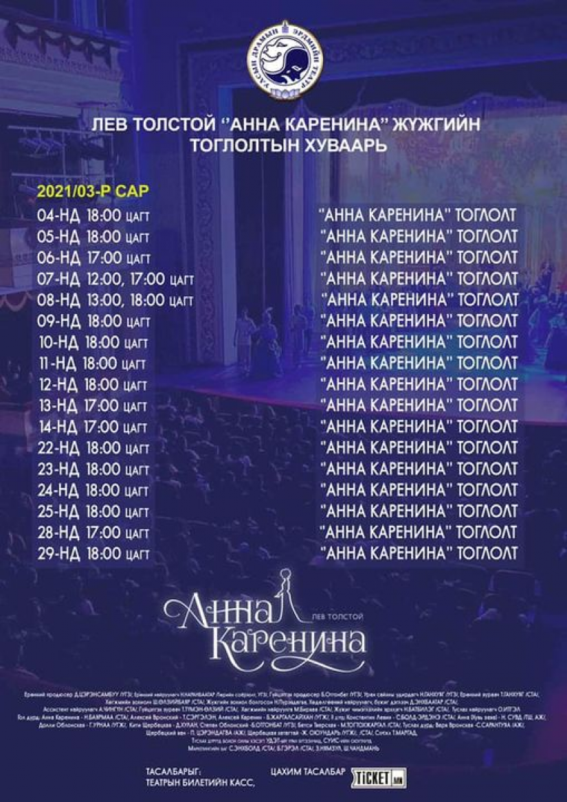 УДЭТ-ын уран бүтээлчид Оросын нэрт зохиолч Лев Толстойн ‘’Анна Каренина‘’ романаас сэдэвлэн бичсэн жүжгийг өнөөдрөөс тайзнаа дахин тоглохоор болжээ.
