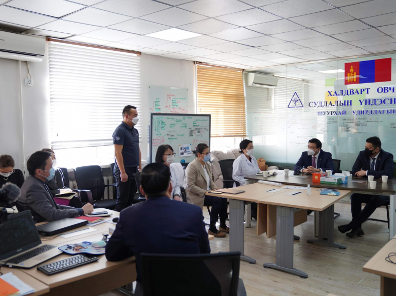 Монгол Улсын Шадар сайд, Улсын онцгой комиссын дарга С.Амарсайхан өнөөдөр Халдварт өвчин судлалын үндэсний төвд очиж, эмнэлгийн удирдлагууд болон Шуурхай удирдлагын нэгжийн багтай уулзаж, нөхцөл байдлыг шалгав. ХӨСҮТ-ийн ажлын зохион байгуулалт, шинжилгээний сорьц цуглуулах явц, дам хавьтлыг илрүүлэх, халдварын идэвхтэй голомтуудад хэрхэн ажиллаж байгаа талаар ХӨСҮТ-ын дарга Д.Наранзул танилцуулав. Цар тахлын үеийн тандалт, судалгааг Шуурхай удирдлагын нэгж хийж долоо хоног бүр дүгнэлт гаргаж байна. Батлагдсан тохиолдол гарсан байршлуудад ариутгал, халдваргүйжүүлэлт дутуу хийгддэг, батлагдсан тохиолдлыг авч явдаг ч ойрын хавьтлыг шинжилгээнд хамруулдаггүйг Шадар сайд шүүмжилж, дотоод зохион байгуулалтаа сайжруулахыг Эрүүл мэндийн сайдад даалгалаа. Тэрээр “Шинээр бүртгэгдсэн тохиолдлуудын эх үүсвэрүүдийг тодорхойлох ажил хангалтгүй байна. Тандалт, судалгааг өргөжүүлж, нарийвчлан тогтоохын тулд бүх мэдээллийг цахимжуулах хэрэгтэй. ХӨСҮТ, ЗӨСҮТ-ийн ажлын уялдаа холбоо, зохион байгуулалт муу байна. Сэжигтэй тохиолдлын явсан газар бүрийг бүрэн ариутга. Эмнэлгийн ажилчид, албан хаагчдын илүү цалин хөлсийг олго. Тандалтын тоон мэдээллийг яаралтай цахимжуулж, ажлаа эрчимжүүл” гэлээ гэж Шадар сайдын Ажлын албанаас мэдээллээ.