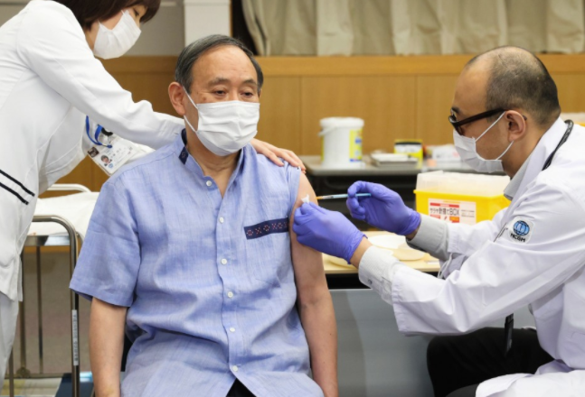 Японы Ерөнхий сайд Сүга Ёшихидэ “Pfizer” компанийн “COVID-19”-ийн вакцины эхний тунг Токио хотын эмнэлэгт өнөөдөр хийлгэлээ. Тэрбээр вакцин аюулгүй болохыг олон нийтэд батлан харуулахын тулд камерын дурангуудын өмнө тариулжээ.