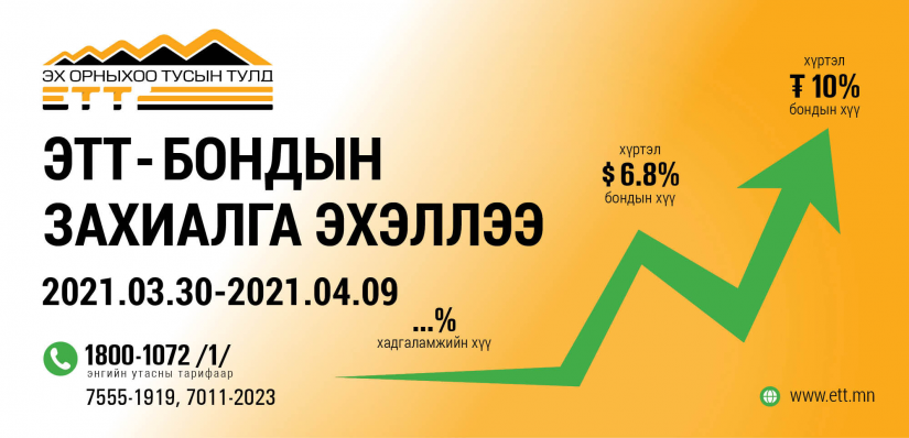 Засгийн газрын 3 дугаар сарын 31-ний өдрийн ээлжит хуралдаанаар бүх нийтийн бэлэн байдлын зэрэгт шилжүүлэхгүй, хөл хорио тогтоохгүй байх шийдвэр гаргасантай холбогдуулан “Эрдэнэс Tавантолгой” ХК-ийн гаргаж буй "ЭTT Бонд"-ын анхдагч зах зээлийн захиалга хүлээн авах хугацааг 4 дүгээр сарын 9-ний өдрийн 17:00 цаг хүртэл сунгахаар шийдвэрлэжээ. Тус бондын арилжааг 3 дугаар сарын 30-нд дотоодын Хөрөнгийн биржид эхлүүлж, бондын анхдагч зах зээлийн захиалгыг тус өдрөөс 4 дүгээр сарын 2-нд авахаар болоод байсан юм.