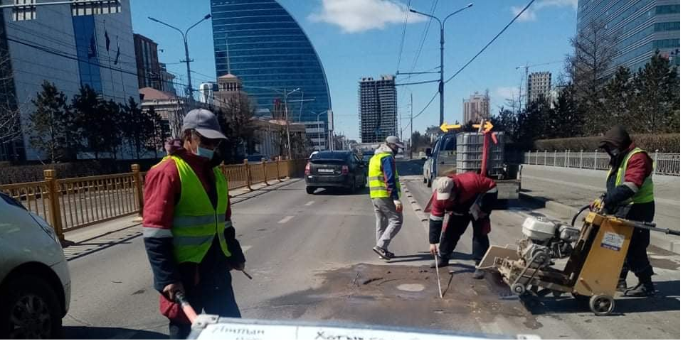 “Улаанбаатар зам засвар, арчлалтын газар” ОНӨААТҮГ нь гамшгаас хамгаалах бүх нийтийн бэлэн байдалд шилжсэн хугацаанд зам засвар, арчлалт, үйлчилгээний ажлуудыг хийж байна. Тухайлбал, дөрөвдүгээр сарын 12-19-ний хооронд Энхтайваны өргөн чөлөө, Зүүн дөрвөн замаас Төв шуудангийн уулзвар хүртэлх хоёр талдаа, Чингисийн өргөн чөлөө, Төв шуудангийн уулзвараас Энхтайваны гүүр, Сүхбаатар, Их сургууль, Их тойруугийн гудамж зэрэг найман гудамжны авто замд үүссэн нийт 85.563 метр урт ан цав, заадсыг битумаар засварлалаа.