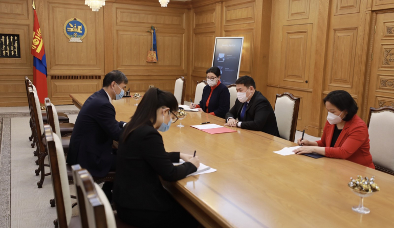 Монгол Улсын Ерөнхий сайд Л.Оюун-Эрдэнэ БНХАУ-аас Монгол Улсад суугаа Элчин сайд Чай Вэньруйг 2021 оны 4 дүгээр сарын 26-ны өдөр хүлээн авч уулзав.