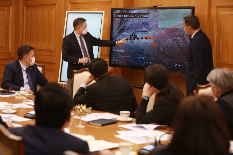 “Богдхан төмөр зам” төслийг хэрэгжүүлэх ажлын явцын талаар ажлын хэсгийн гишүүд Монгол Улсын Ерөнхий сайдад танилцуулав.