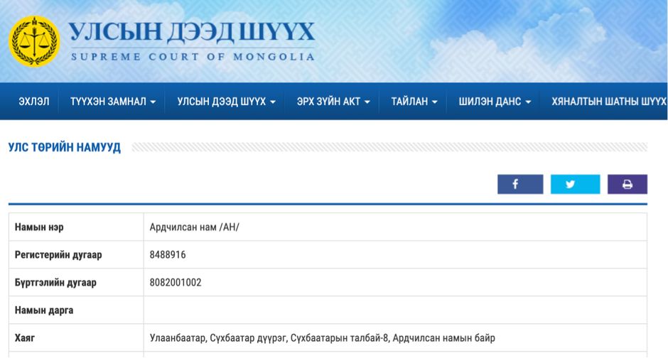 Энэ сарын 27-ны өдөр хуралдсан Улсын Дээд шүүхийн нийт шүүгчийн хуралдаанаас Ардчилсан намын даргаар О.Цогтгэрэл, М.Тулгат нарын тус тус бүртгүүлэх хүсэлтүүдийг хэлэлцээд намын дүрмээр зохицуулах дотоод зохион байгуулалт, үйл ажиллагаатай холбоотой маргаан гэж үзэн хэн хэнийг нь бүртгэхээс татгалзсан.