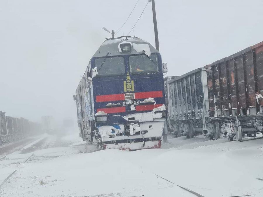 Өчигдөр буюу энэ сарын 6-ны шөнө Чойр хэсэглэлийн Наран Элгэн-Айраг өртөө хооронд их хэмжээний цас орж, салхи 37 м/сек хүртэл хүчтэй шуурсны улмаас төмөр зам цасанд дарагдаж галт тэрэгний хөдөлгөөн түр зогсоход хүрчээ.