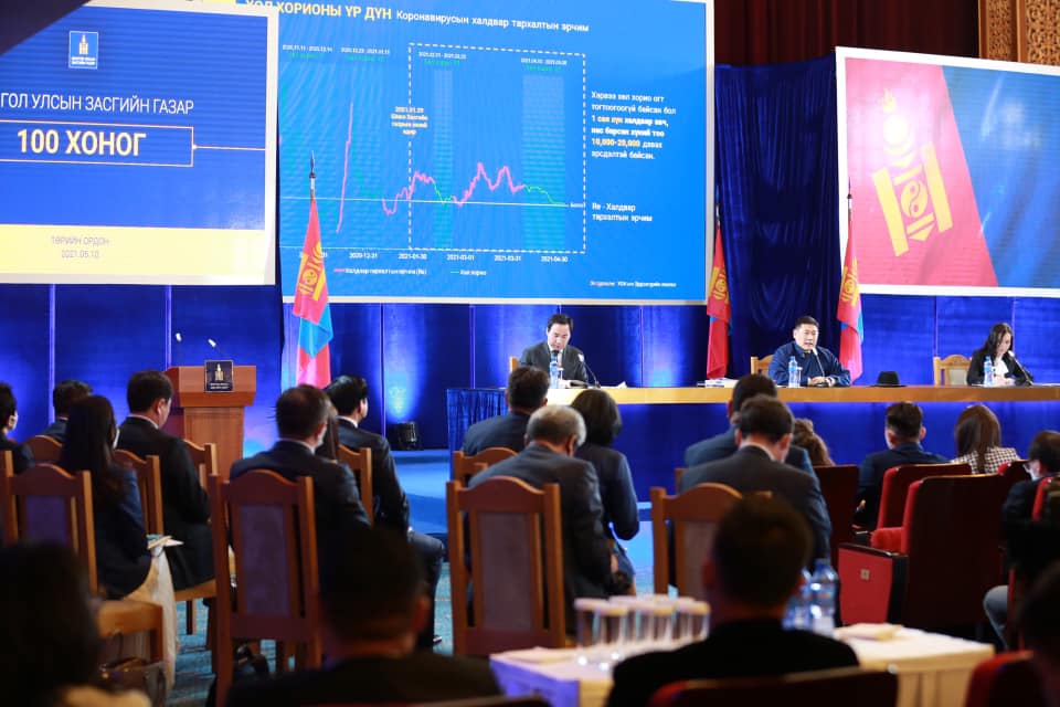 Тэрбээр, “Цар тахал бол эдийн засагтай урвуу хамааралтай. Хөдөлгөөн их байх тусам цар тахлын тохиолдол нэмэгддэг. Хөдөлгөөн хорих тусам цар тахал буурч, эдийн засаг агшдаг. Эдийн засаг 5.3 хувь болон буурч, төсөв тасалдсан, арилжааны банкууд зээл олголтоо зогсоож, Төвбанканд 8 их наяд төгрөг гацсан, 68.9 мянган ажлын байр байхгүй болсон нөхцөл байдалтай шинэ Засгийн газар нүүр тулсан. Тиймээс тодорхой стратегитай явах ёстой байсан. Хөл хорио тавих болгонд тохиолдлын тоо багасдаг. Тавьсны дараа нэмэгддэг. Хөл хорио түр зуурын ажил хэдий ч дэлхий нийт үүнээс илүү үр дүнтэй арга олоогүй байна. Хэрэв хөл хорио тогтоогоогүй байсан бол 1 сая хүн халдвар авч, 10 мянган хүн нас барах эрсдэлтэй байсан гэдгийг ХӨСҮТ бидэнд танилцуулсан. Судлаачид хөл хорио, вакцин бол хамгийн чухал алхам гэдгийг хэлсэн. Тиймээс бид вакцин татан авах хэлэлцээр хийж эхэлсэн. Өмнөх Засгийн газрын үед энэ хэлэлцээрүүд урагшилсан байсан.