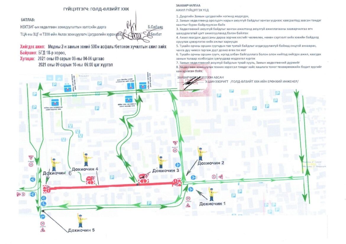 Өнөөдрийн байдлаар тус замын 500 метр газарт цементээр бэхжүүлдэг суурь тавьжээ. Зам хаах тул жолооч нарыг дараах маршрутаар замын хөдөлгөөнд оролцохыг зөвлөв.