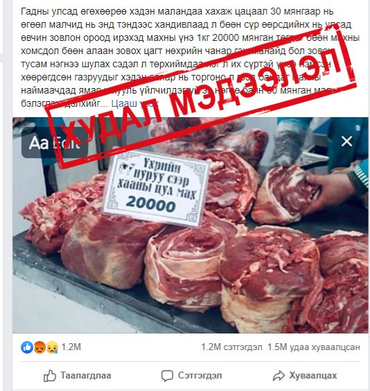 Олон нийтийн дунд цахим хуудсаар дамжуулан “Үхрийн нуруу, сээр, хааны цул мах 20000” гэсэн махны үнийн зураг тавин, үүнийгээ засаж, фотошопоор завсарласан зургийг байршуулж, олон нийтийг төөрөгдүүлсэн худал мэдээллийг түгээсэн байна. Энэхүү худал мэдээлэл нь өндөржүүлсэн бэлэн байдал зарласан энэ хариуцлагатай үед олон нийтийг бухимдуулж, төөрөгдүүлсэн, үнийг хөөрөгдөх нөхцөл байдал үүсгээд буй.