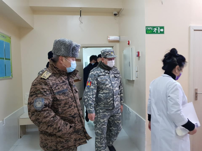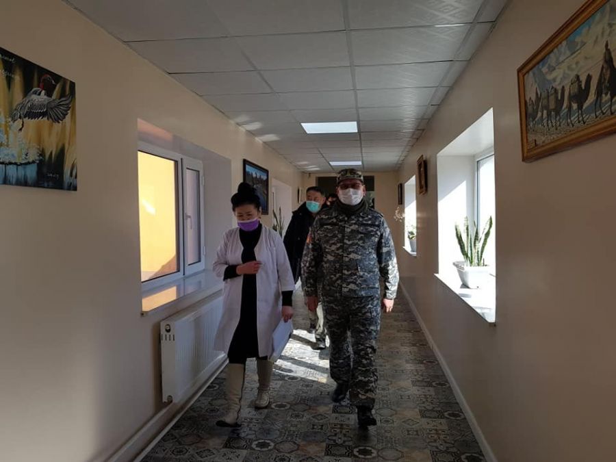 Монгол Улсын Шадар сайд Ө.Энхтүвшин, ОБЕГ-ын тэргүүн дэд дарга, бригадын генерал Г.Ариунбуян нар тусгаарлах байруудын бэлтгэл, бэлэн байдалтай танилцаж байна.