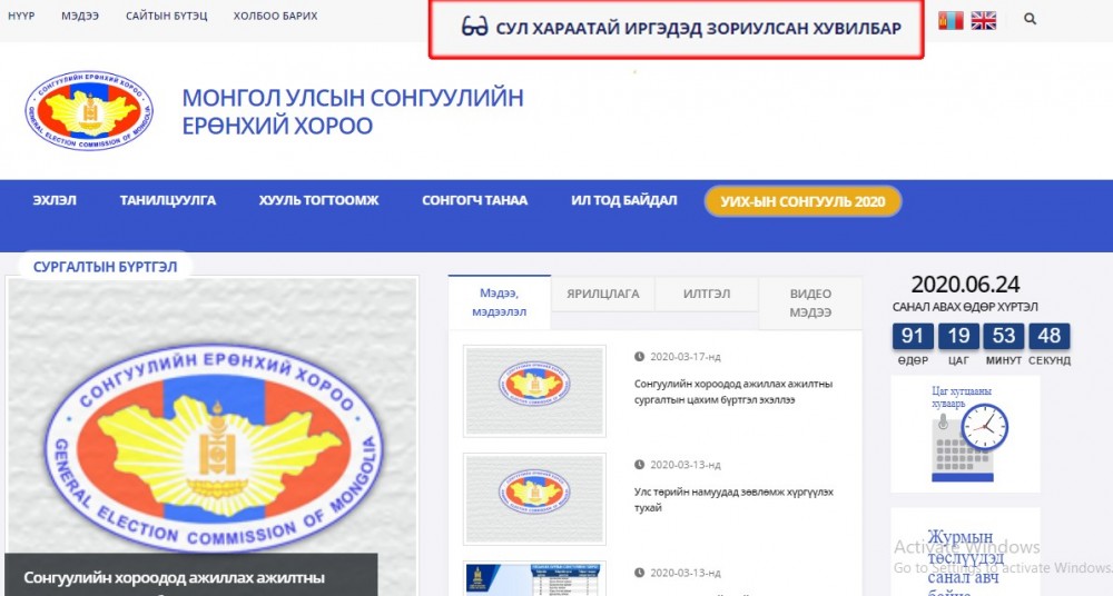 Сонгуулийн ерөнхий хорооны вэбсайт gec.gov.mn сул хараатай иргэдэд зориулсан хувилбартай болжээ.