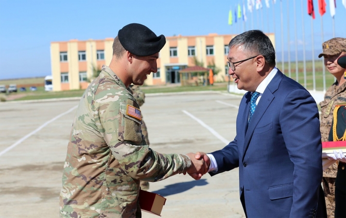 “Хааны эрэлд-2022” энхийг сахиулах ажиллагааны олон улсын хамтарсан сургуулийн хаалтын ажиллагаа өнөөдөр боллоо. Тус ёслолын ажиллагаанд Батлан хамгаалахын дэд сайд Б.Баярмагнай, ЗХЖШ-ын дарга дэслэгч генерал Д.Ганзориг, Батлан хамгаалахын Ерөнхий хянан шалгагч бригадын генерал Ж.Болдбаатар, ЗХЖШ-ын Сургалтын бэлтгэлийн газрын дарга бригадын генерал Г.Болор, Монгол Улсад суугаа Элчин сайдын яамны цэргийн атташе нар, бусад хүндэт зочид хүрэлцэн ирлээ.
