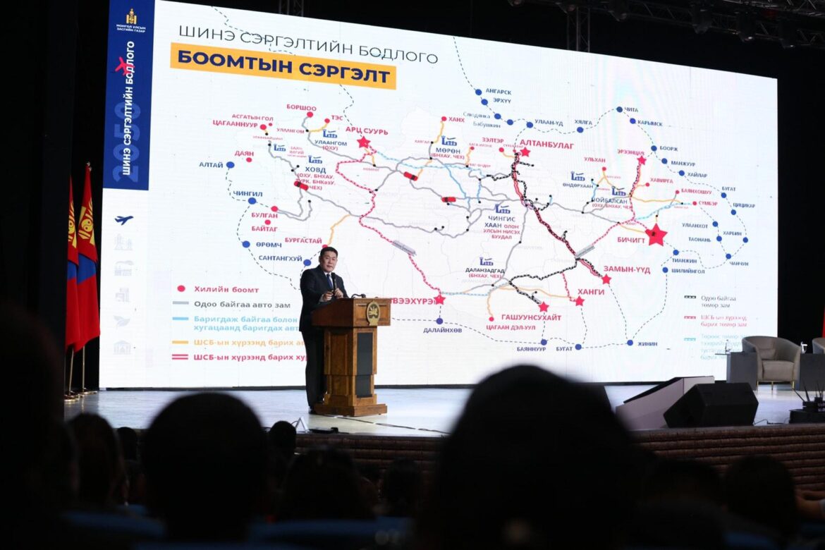 Засгийн газраас “Алсын хараа-2050” Монгол Улсын урт хугацааны хөгжлийн бодлогын эхний 10 жилийн зорилтыг “Шинэ сэргэлтийн бодлого”-д тусган батлуулж, хэрэгжүүлж эхлээд буй. Энэ хүрээнд боомтын хүчин чадлыг нэмэгдүүлж, авто болон төмөр замаар холбох, эрчим хүчний шинэ эх үүсвэрүүдийг нэмэх, аж үйлдвэрийн салбарт томоохон төслүүдийг хэрэгжүүлэх, хот хөдөөгийн хөгжлийн тэнцвэрийг хангах, ногоон хөгжил, төрийн бүтээмжийг сайжруулах бодлогын ажлууд хийгдэж буйг Ерөнхий сайд Л.Оюун-Эрдэнэ танилцууллаа.