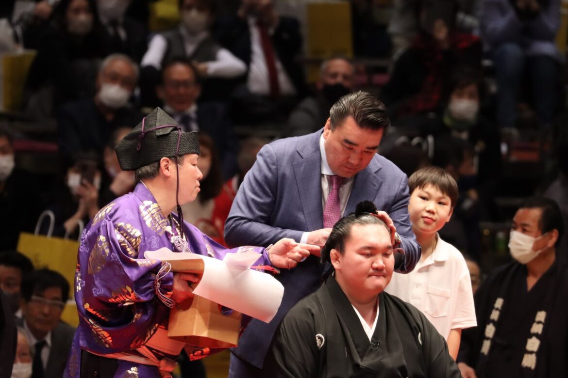 Мөн Хакүхо аварга сүүлийн барилдаанаа хүүтэйгээ хийж үзэгч олны сэтгэлийг хөдөлгөв.