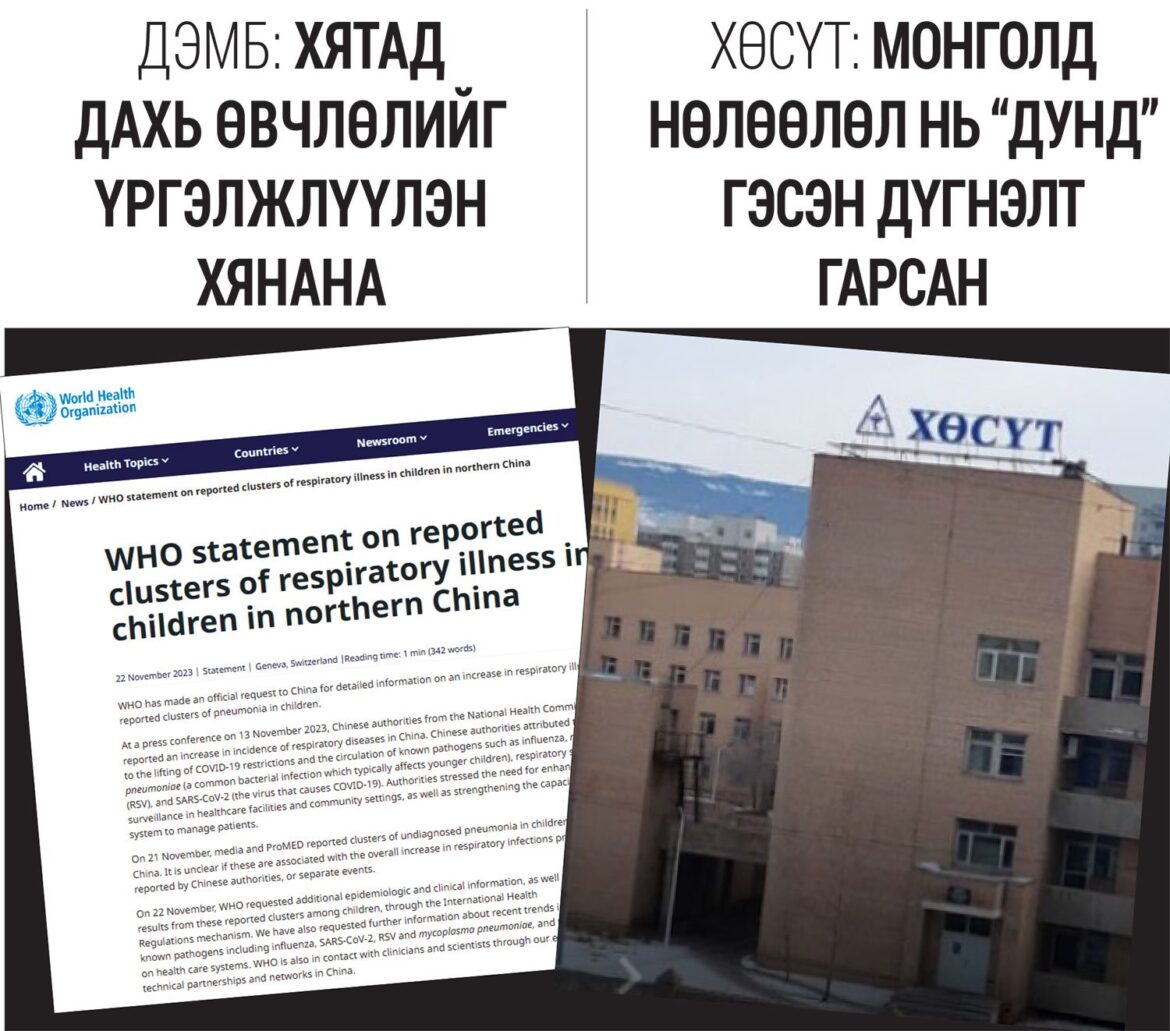 Харин өмнөд хөршид амьсгалын замын халдвар нэмэгдэж байгаа талаар мэдээлэл өгөхийн зэрэгцээ манай улсад урьдчилан сэргийлэх ямар арга хэмжээ авч байгаа талаар ХӨСҮТ-өөс өчигдөр мэдээлэл хийлээ.