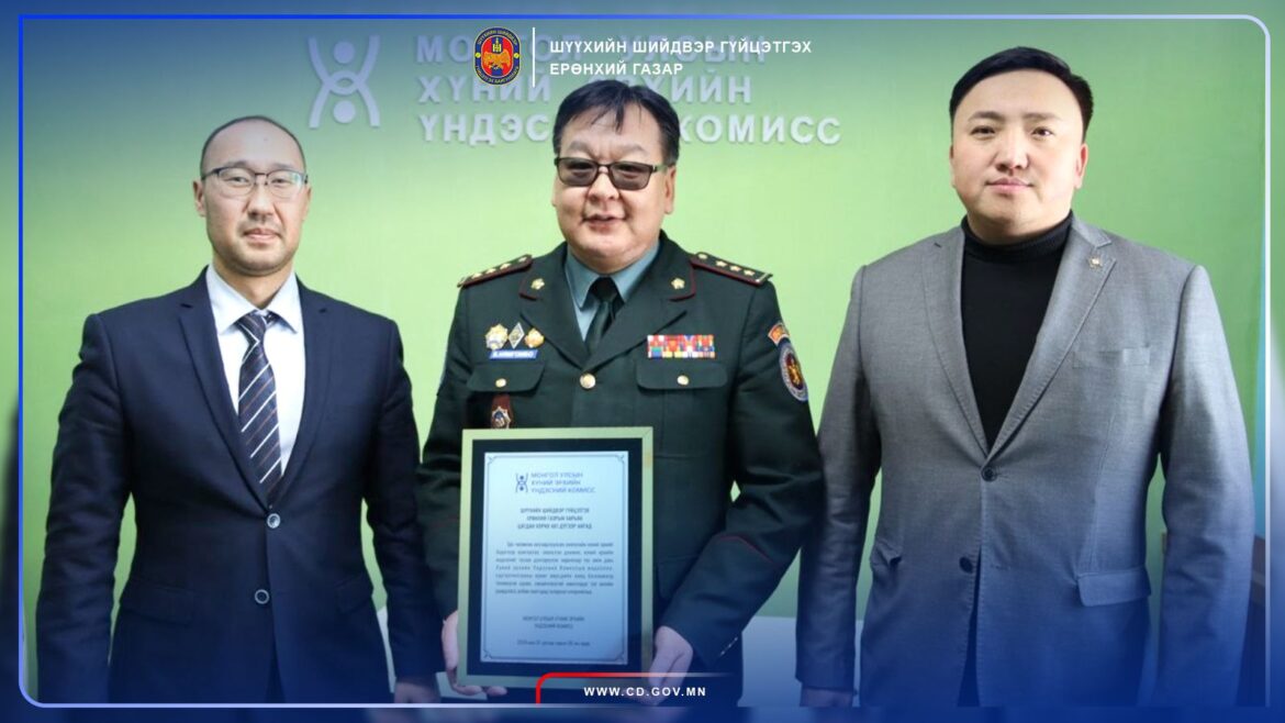 Хүний Эрхийн Үндэсний Комиссоос/ХЭҮК/ 2023 онд хүний эрхийг хангах чиглэлээр тодорхой ахиц дэвшил гарган ажилласан гэж үзэж, Шүүхийн Шийдвэр Гүйцэтгэх Ерөнхий Газрын харьяа Цагдан хорих 461 дүгээр хаалттай ангийн удирдлагад талархлын бичиг гардуулан өгчээ.