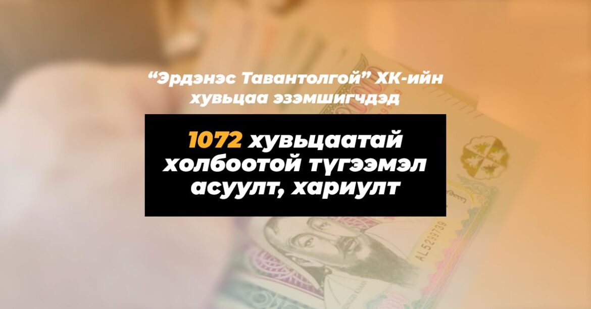 “Эрдэнэс Тавантолгой” хувьцаат компаниас 2023 оны хувьцааны ногдол ашиг болох 256,000 төгрөгийг өнөөдрөөс (2024/04/04-ний өдөр) хувьцаа эзэмшигч иргэдийн арилжааны банкны дансанд олгож эхэллээ. 1072 хувьцааны талаар иргэд, олон нийтийн дунд мэдээлэл дутмаг, зөрүүтэй ойлголтууд байгаа нь ногдол ашиг олгох болон хувьцааг бүртгэх ажлуудад зарим талаар хүндрэл учруулж байна.