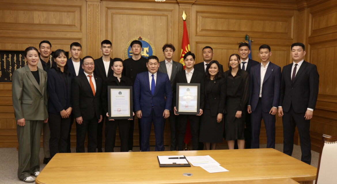 Монгол Улсын 3х3 сагсан бөмбөгийн шигшээ баг тамирчдыг үндэсний нэгдмэл үнэт зүйл, бахархлыг дэлхий дахинд түгээн дэлгэрүүлж, улс орноо олон улсад сурталчлан таниулахад онцгой хувь нэмэр оруулж буйг үнэлэн өөдөө тэмүүлэх Монгол буюу “Go Mongolia” элчээр өргөмжилж, батламжийг гардууллаа.
