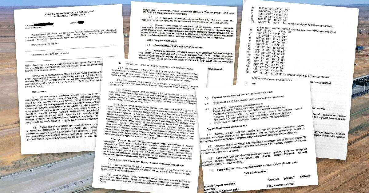 Түүгээр “Энержи ресурс” компанийн эзэмшиж байсан Тавантолгой ордын зургаан лицензийн тавыг нь Засгийн газарт шилжүүлж, Ухаахудагийн хэсгийг тус компанид үлдээсэн байдаг. Чухамдаа, бүх асуудал үүнээс эхтэй болж таараад байгаа юм. Тодруулбал, тус гэрээний 1.2 -т “Тавантолгой нүүрсний орд газар нь улсын төсвийн хөрөнгөөр нөөцийг нь тогтоосон стратегийн ач холбогдол бүхий ашигт малтмалын орд тул Ашигт малтмалын тухай хуулийн 5.4-т зааснаар түүнийг хувийн өмчит хуулийн этгээдтэй хамтран ашиглахад төрийн оролцооны хувь хэмжээг 86 хувиар тогтоох Хөрөнгө оруулалт болон Хувь нийлүүлэгчдийн гэрээний төслийг Засгийн газраас томилсон ажлын хэсэг, ашиглалтын лиценз эзэмшигч “Энержи ресурс” ХХК хоёр 2007 оны зургаадугаар сард харилцан тохиролцсон” гэжээ. Улмаар 2.1, 2.2 дахь хэсэгт зааснаар “Энержи ресурс” ХХК нь нийт 68523 гектар талбай буюу Тавантолгой нэртэй 11943А тоот ашиглалтын лицензтэй 2037 гектар талбай, Тавантолгой нэртэй 11956А тоот лицензтэй 5603 гектар талбай, Бор толгой нэртэй 11953А тоот ашиглалтын лицензтэй 12890 гектар талбай, бор тээг-1 нэртэй 11954А тоот ашиглалтын лицензтэй 23461 гектар талбай, Шар тээг нэртэй 11955А тоот ашиглалтын лицензтэй 24532 гектар талбайг тус тус Засгийн газраас нэр заасан хуулийн этгээдэд нэг төгрөгөөр үнэлэн шилжүүлэн өгөх үүргийг хүлээхээр тусгажээ.