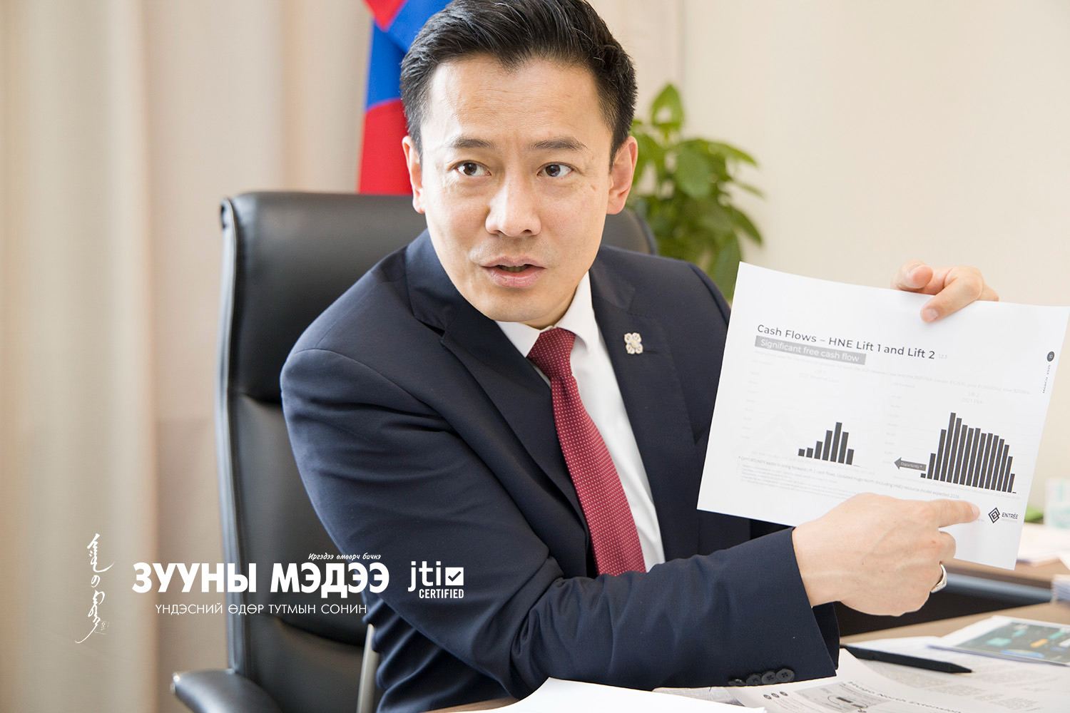 -Оюу толгойн ордтой холбоотой мэдээллийн тэнцвэргүй байдал маш их байгаатай холбоотойгоор би дахин давтан хэлэхэд Монголын Хөрөнгийн бирж дээр нээлттэй компани болж гарах нь чухал байна. Нээлттэй компани болчихвол зөвхөн төр засаг хөөцөлдөөд явах биш Монголын хувьцаа эзэмшигчид өөрсдөө мэдээллээ авдаг, зөвийг дэмжиж, бурууг шүүмжилдэг болно. Оюу толгойг олноороо эзэмшээд олноороо шийдвэр гаргадаг болох боломж зөвхөн Хөрөнгийн бирж дээр гарах юм.