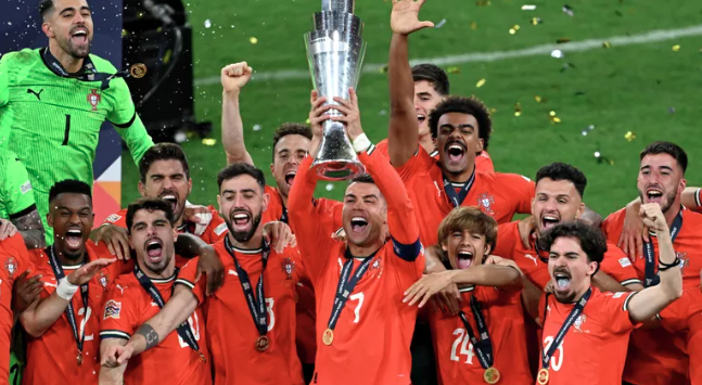Португалын хөл бөмбөгийн шигшээ баг УЕФА-гийн Үндэстнүүдийн лигийн тэмцээний финалын тоглолтод Испанийн багийг торгуулийн цохилтоор буулган авчээ. Мюнхен хотын "Альянц Арена" цэнгэлдэх хүрээлэнд болсон тоглолтын үндсэн болон нэмэлт цаг 2:2-ын харьцатаай тэнцээгээр дууссан байна.