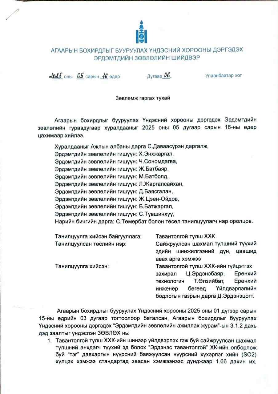 2025 оны 5 дугаар сарын 16-ны өдрийн Агаарын бохирдлыг бууруулах Үндэсний хорооны дэргэдэх Эрдэмтдийн зөвлөлийн шийдвэрээр Улаанбаатар хотод ирэх өвөл хагас кокс буюу хөх нүүрсээр хийсэн шахмал түлш хэрэглэх шийдвэрт хүрсэн.
