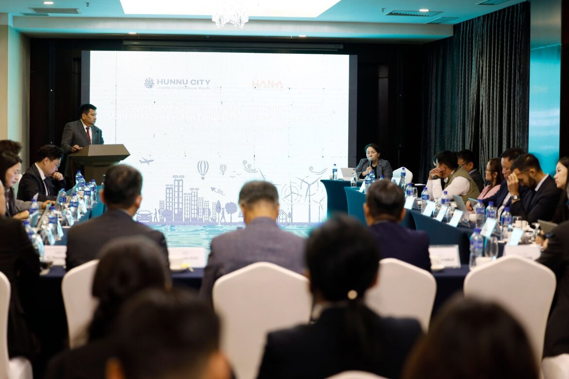 Хан-А хотын судалгааны хүрээлэнгийн захирал Тэ Кёнжин “Хүннү хот болон Хархорум хотыг хөгжүүлэх төслийн хүрээнд төлөвлөгөө боловсруулах болон зөвлөх үйлчилгээ үзүүлэхээр бэлтгэлээ ханган ажиллаж байна. Шинэ хотуудыг байгуулах ажил Монгол Улсын ирээдүйд маш чухал ач холбогдолтой. Үүнд оролцож байгаадаа баяртай байна. Мөн өөрсдийн хуримтлуулсан мэдлэг туршлагаа хуваалцахдаа таатай байна. Улаанбаатар хотын төвлөрөл олон асуудлыг дагуулж байдаг. Үүнийг шийдвэрлэх нь нэн тэргүүний ажил юм. Улаанбаатар хотод тулгамдаад буй жижиг нутаг дэвсгэрт олон хүн суурьшихад гарч байгаа асуудал Солонгос улсад ч бас тохиолдож байлаа. Үүнийг хэрхэн шийдэж ирсэн бэ гэдгээ энд танилцууллаа. Эхний ээлжид тохиромжтой газрыг сонгоод тархаан байршуулах буюу төвлөрлийг бууруулах төслүүдийг хэрэгжүүлэх хэрэгтэй. Дараа нь тэдгээр бүс нутгуудыг холбосон дэд бүтцийг барьж байгуулах ёстой. Өөрийн гэсэн онцлог бүхий суурьшлын бүсийг бий болгоно гэдэг нь тэнд хүнд хэрэгтэй бүхий л зүйл байх хэрэгтэй гэсэн үг. Түүнчлэн эдгээр бүсүүд өөр өөрийн гэсэн онцлогтой хөгжих хэрэгтэй” гэв.