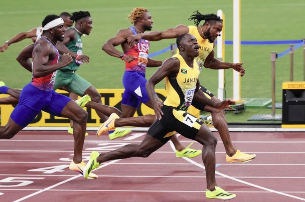О.Севилл Токиогийн Үндэсний цэнгэлдэх хүрээлэнд 9.77 секундэд барианд орсноор хувийн дээд амжилтаа ахиулж, Парисын Олимпын мөнгөн медальт К.Томпсоноос 0.05 секундээр илүүрхсэн бол Олимпын аварга, Америкийн тамирчин Ноа Лайлс 9.89 секундийн амжилтаар хүрэл медалийн болзол хангажээ.