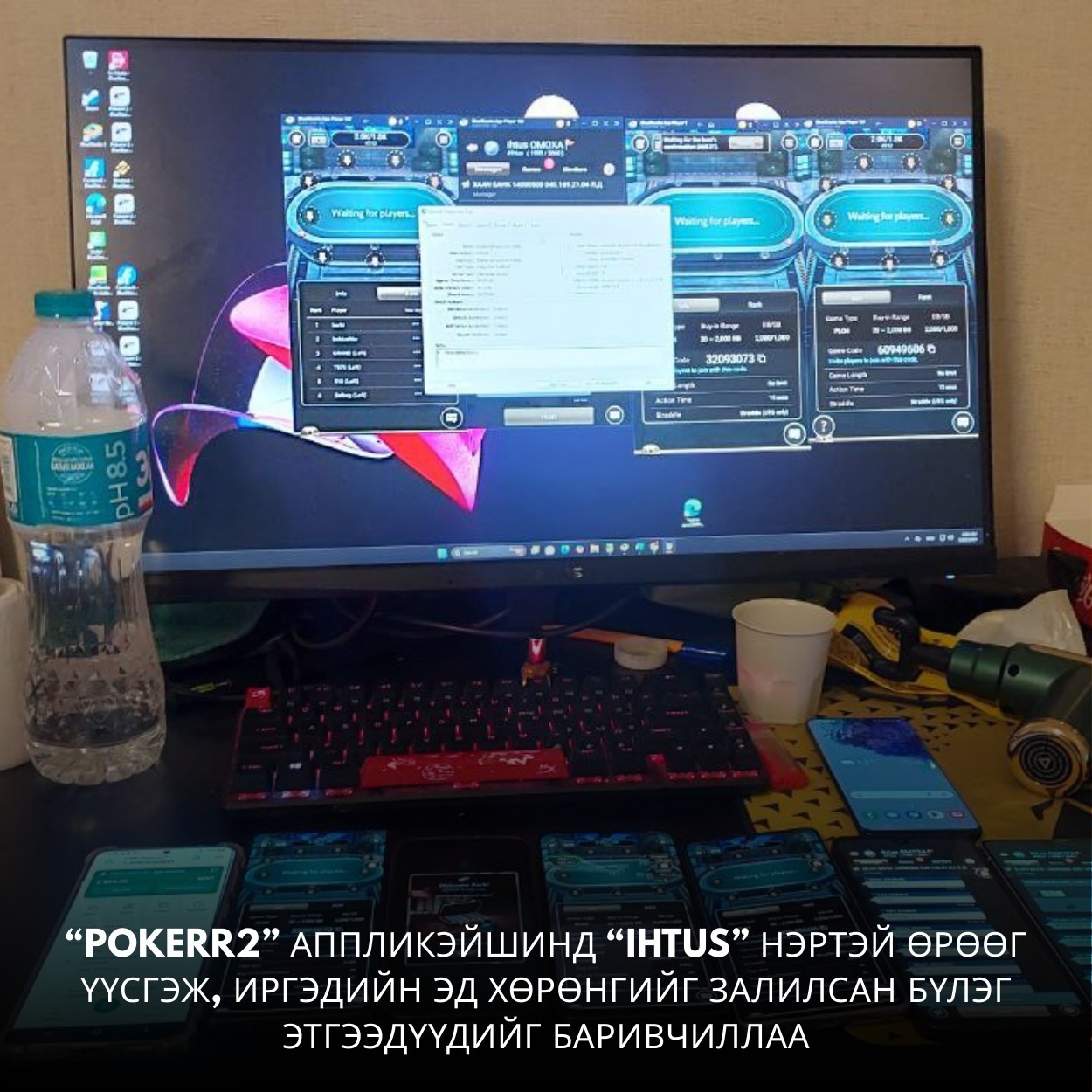 Цагдаагийн байгууллагаас цахим орчинд “Pokerrr2” аппликейшинд нэр бүхий өрөөг үүсгэж, зохиомол байдлыг зориудаар бий болгон иргэдийг төөрөгдөлд оруулж, мөрийтэй тоглоом зохион байгуулж байсан бүлэг 7 этгээдийг олж тогтоон баривчиллаа. Дээрх нэр бүхий бүлэг этгээдүүд нь цахим орчинд хууль бусаар мөрийтэй тоглоом зохион байгуулж олсон орлогоос, нийт 800 орчим сая төгрөгөөр орон сууц, тээврийн хэрэгсэл зэрэг үл хөдлөх хөрөнгийг худалдан авч, гэмт хэргийн замаар олсон орлогын эх сурвалжийг нуух замаар мөнгө угаах гэмт хэрэг үйлдсэн байж болзошгүй нөхцөл байдал тогтоогдоод байна.