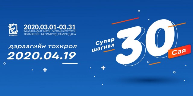 Иргэн та 2020 оны 03 дугаар сарын 01-нээс 31-ний өдөр хүртэлх хугацаанд худалдан авалт хийсэн цахим төлбөрийн баримтаа 2020 оны 04 дүгээр сарын 18-ны өдрийн 23 цаг 59 минутаас өмнө Цахим төлбөрийн баримтын системд бүртгүүлснээр НӨАТ-ын урамшууллын сугалаанд хамрагдан азтан болох боломжтой.