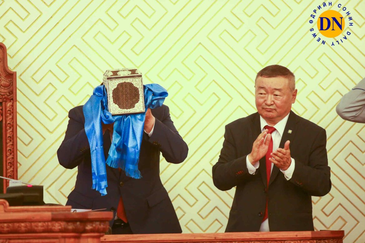 Нэг ийм соньхон өгүүлэмжтэй дүрс гэрэл зурагчдын дуранд бууж үлдcэн байдаг. Энэ бол 2020 оны 7-р сарын 1-ний өдөр. УИХ шинэхэн дарга тамгаа хүлээн авч буй түүхэн мөч. Шинэхэн ч биш юмаа, улиран сонгогдсон спикер тамгаа Баделханд бариулж байгаад буцаан авч байгаа байдал гэх юм уу даа. Тамга ч сайхан гарч. Харин тамга авагч Г.Занданшатар даргын толгой алга болжээ. Тамгандаа хэт сүсэглэн мөргөснөөс л болж дээ. Зарим том дарга нар тамгаа ажил биш “буян” гэж боддог нь ч бий байх.