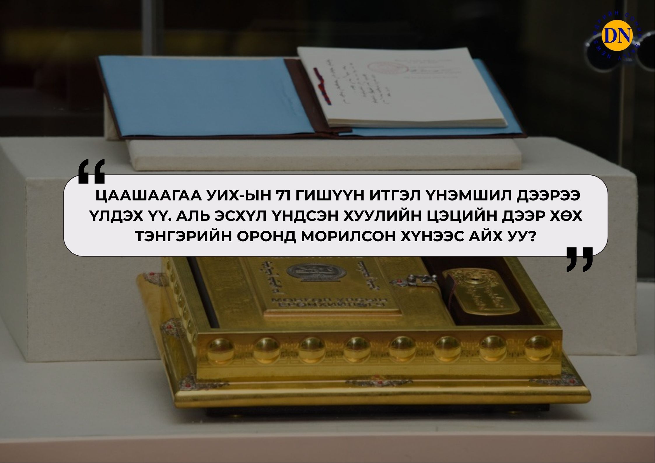 24 оны УИХ-ын сонгуульд олонхын санал авч эрх барьж байгаа МАН-ын доторх зөрчлөөс гаралтай хямрал төрд орж ирсэн. УИХ, Засгийн газрын ажилд ч нөлөөлсөн. Хуулийн хашаа давж одсон. Гэлээ гэхдээ Үндсэн хуулийн Цэц яаран үсэрч ороогүй бол сайн байсан юм. Үндсэн хуулийн Цэцийн дээр хөх тэнгэр л байдаг гэдэгчлэн энэ олон зах замбараагүй явдлыг өөртөө хүртэл нөлөөнөөс ангид байж гүрийх хэрэгтэй байв. Өөрөөр хэлэхнээ: Улстөрчид хуулийн хашаа, хяналтыг бүрэн давж алхацгаасан ч тулах хана, тогтоох хашаа нь болохын тулд Үндсэн хуулийн Цэц нэр цэврээрээ үлдэх байсан юм. Харамсалтай нь: Үндсэн хуулийн Цэц ийнхүү оролцохдоо Үндсэн хуулиа зөрччих шиг боллоо. Хэзээ нэг цагт өөрсдөө шүүлгэхүйц овоо босгоод орхилоо. Цэх шулуун хэлэх нь ээ: Улс төрийн хэрүүлд Цэц орж ирснээр улс орон Үндсэн хуулийн гүнзгий хямрал руу явчихлаа даа…