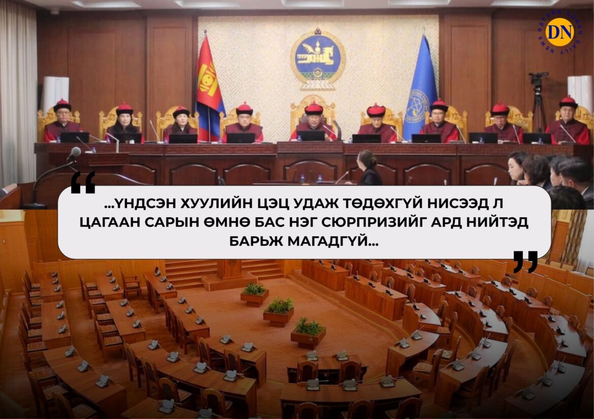 Гуравт: Үндсэн хуулийн цэцийн энэ бүрэлдэхүүний өнгөн дээр УИХ-аас Ерөнхий сайдыг огцруулах босго хуулийн бусаар өндөрсөв.
