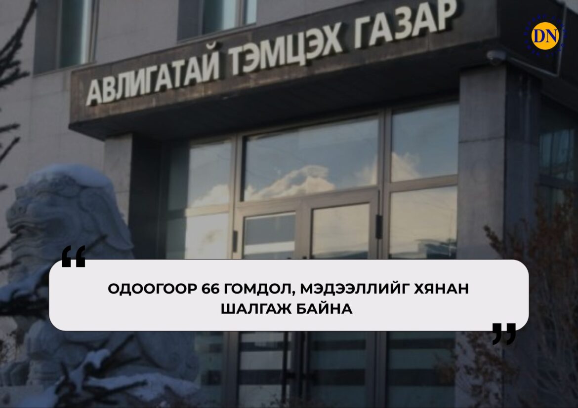 Авлигатай тэмцэх газрын Мөрдөн шалгах хэлтэс 2025 оны 11 дүгээр сарын 10-16-ны өдрүүдэд гэмт хэргийн шинжтэй 84 гомдол, мэдээллийг шалгасан байна. Үүнээс 9 гомдол, мэдээлэлд хэрэг бүртгэлтийн хэрэг нээх, 8 гомдол, мэдээлэлд хэрэг бүртгэлтийн хэрэг нээхээс татгалзах, 1 гомдол мэдээллийг харьяаллын дагуу шилжүүлэх саналтайгаар прокурорт шилжүүлсэн бөгөөд одоогоор 66 гомдол, мэдээллийг хянан шалгаж байна.