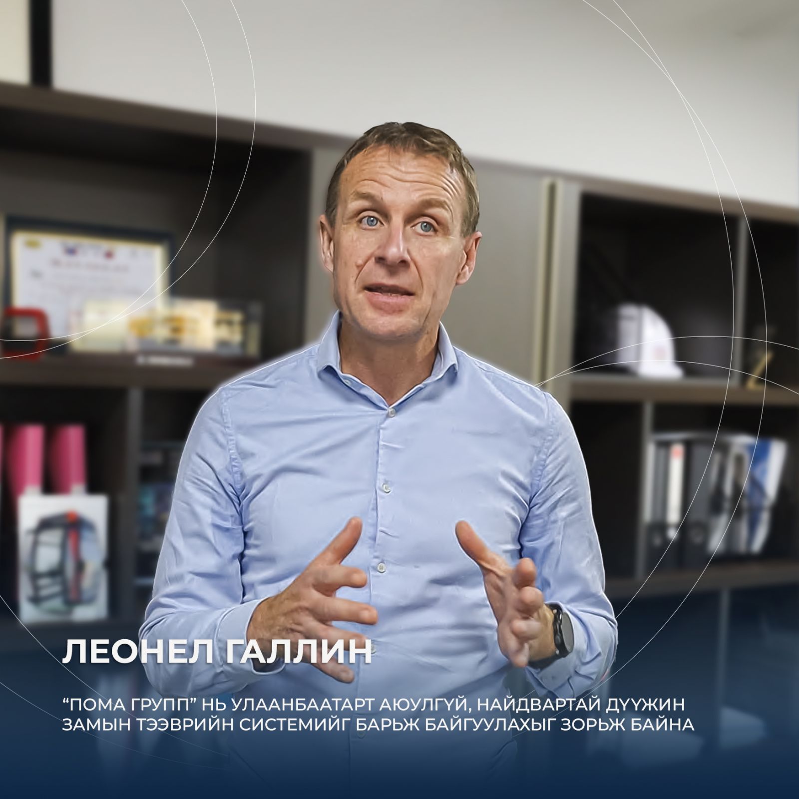 Намайг Леонел Галлин гэдэг. Би “Пома групп”-ийн олон улсын төслүүдийг хариуцсан захирлаар ажилладаг. Монгол Улсад анх удаа ирж байна. Нийслэл Улаанбаатарт хэрэгжиж буй дүүжин замын тээвэр төслийн явц гүйцэтгэл, хэрэгжилттэй танилцахаар богино хугацаагаар ирээд байна.