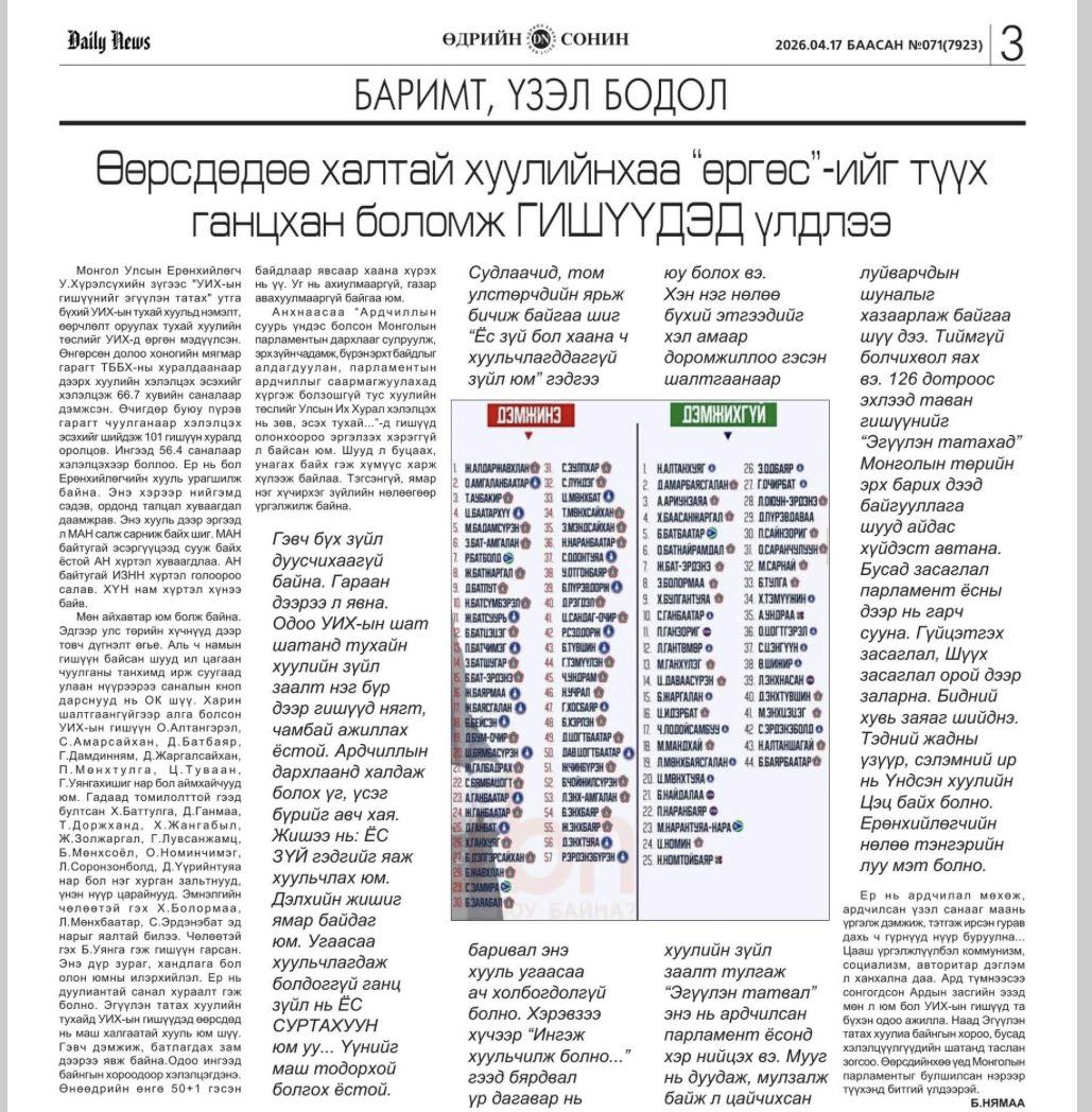 "Өдрийн сонин" /2026.04.17/