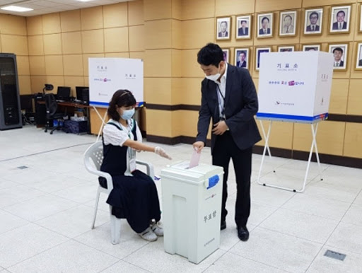 Мөн өнөөдөр Өмнөд Солонгосын Ерөнхийлөгч Мүн Жэ Ин гэргий Ким Жун Сокын хамт амны хаалт, нэг удаагийн бээлий өмсөн саналаа өгөв. Ерөнхийлөгч Мүн энэ удаагийн сонгуульд иргэдийг уриалан, иргэдийн ирцийг нэмэгдүүлэх зорилгоор саналаа эрт өгсөн аж.