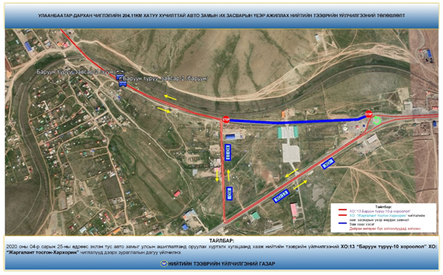 Иймд авто замын ажил хийгдэх явцад нийтийн тээврээр зорчигч иргэд та бүхэн 2020 оны 04 дугаар сарын 25-ны өдрөөс эхлэн доорх зураглалын дагуу зорчилтоо төлөвлөнө үү.