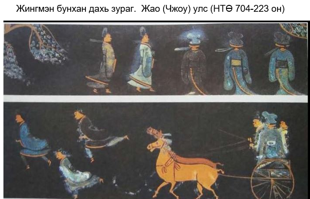 Жао гэдэг чинь тэр үеийн Хятадын нэг улс л даа. Тэр үед хятад олон хэсэг улс байжээ. У Лин Ван гэдэг чинь тэр Жао улсын эзэн хаан ажээ. Түүний үед Жао улс нэлээд хүчирхэжсэн байна. Тал тал тийшээ дайтаж эзлээд л… Тайлбарт: “Заншлаа огоорч Ху-гийн хувцсаар хувцаслав. Унах намнахад дасгав” гэдэг нь Жао-гийн У Лин Ваны арван есөн он, НТӨ 307 оны хэрэг” гэжээ. У Лин Ван төрийн эрх барьж буй 19 дэх жилдээ Хүннү хувцас хэрэглэж эхэлжээ. Хятадууд Хүннү гоё хувцас хэрэглэхээс өөр арга байсангүй. Хаан болон сайд цэргийн жанжин нар, зарим цэрэг морь унаж сурах хэрэгцээ гарчээ. Хятадын хил залгаа улс руу бол явган цэрэгтэй очиж болно. Гэтэл хүчирхэг Хүннү гүрэнтэй тулалдвал морь унах шаардлага зайлшгүй тулгарна. Тэгээд морь унахад суурьшмал орны дэрс хулс зэгсэн шаахай, оодон хүрэм яаж ч нийцэхгүй. Тиймээс Хүннү хувцас зохимжтой нийцвэртэй бас гоё ганган байжээ.
