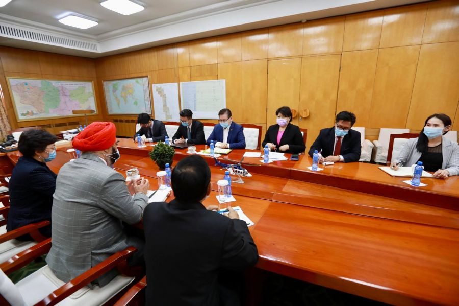 Уулзалтын үеэр Шадар сайд Ө.Энхтүвшин “Бид болж өгвөл хамгийн том суудлын багтаамжтай онгоцоор нислэг үйлдэхийг судалж байна. Бидэнд тулгарч байгаа бэрхшээл нь Энэтхэг улсын өнцөг булан бүрт, олон хотод манай улсын иргэд тархан байршсан байна. Тиймээс аль хэсэгт хамгийн ихээр хүн олноор төвлөрсөн байна, аль хот руу нислэг үйлдэх вэ зэрэг судалгаан дээр манай Улсын Онцгой комиссын Шуурхай Штаб, Гадаад харилцааны яам, Элчин сайдын яам ажиллаж байна. Энэ амралтын өдрүүдээр ирэх долоо хоногт тусгай нислэгийн хугацааг товлон тодорхой болгох үүргийг Улсын Онцгой комиссын Шуурхай штабт өгсөн. Түүнчлэн нислэгээр ирэх бүх иргэнийг шинжилгээнд хамруулах боломж нөхцөлийг ноён Элчин сайд та анхааралдаа авахыг хүсье” хэмээлээ.