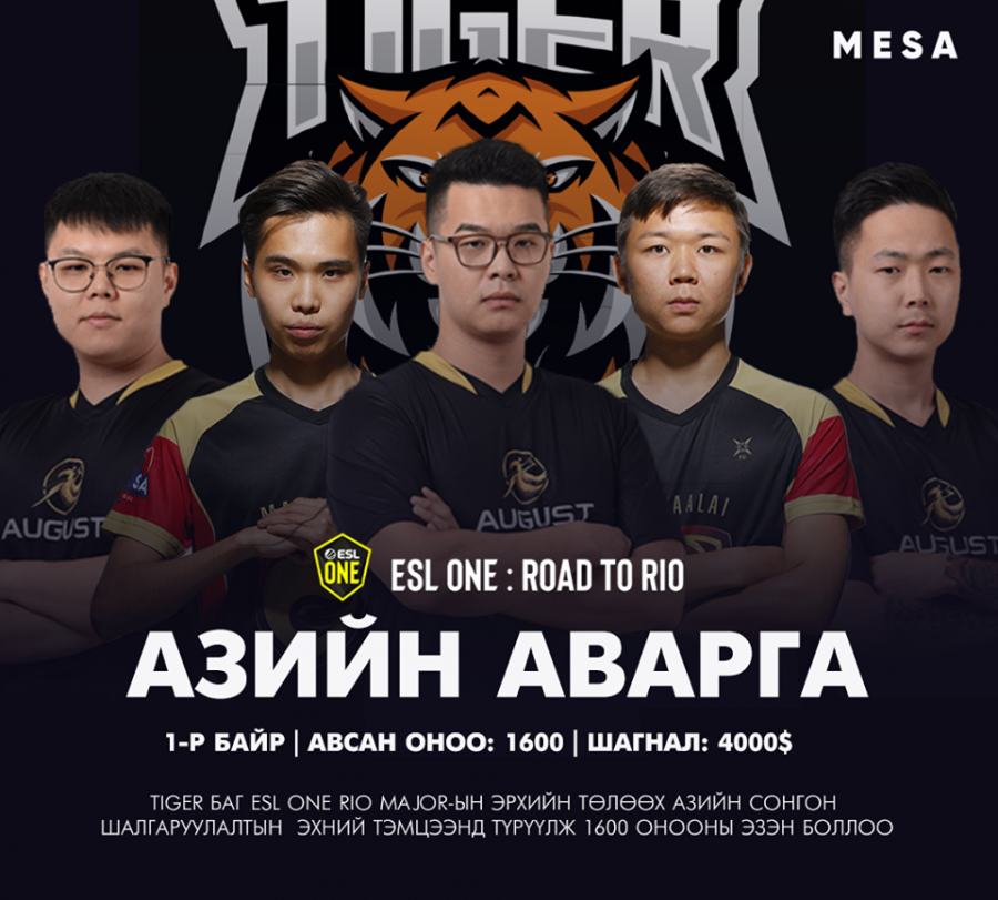 Цахим спортын ESL One: Road to Rio буюу энэ жилийн CS:GO major тэмцээний Ази тивийн цувралын эхний аварга шалгаруулах тэмцээнд Монгол улсын “Tiger” баг шалгарсан байна.