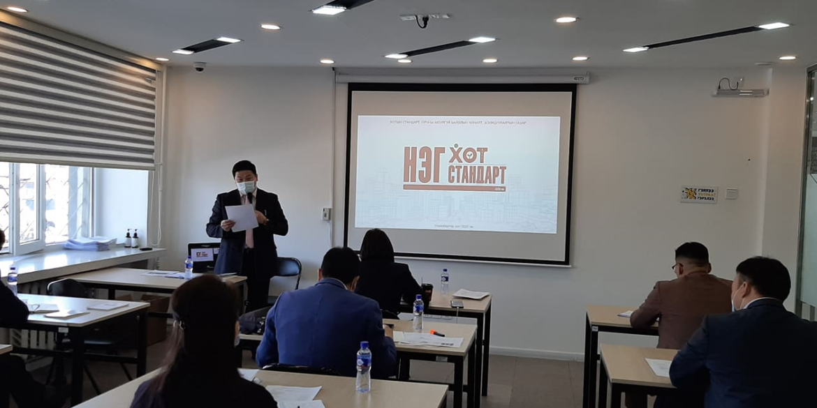Нийслэлийн 9 дүүргийн Засаг даргын Тамгын газрын удирдах түвшний 107 албан хаагчдад 04 -р сарын 27-оос 05-р сарын 01-ны өдрүүдэд зохион байгуулсан мэргэжил, арга зүйн зөвлөгөөнд Нийслэлийн Засаг даргын 2020 оны “Хотын стандартын баримт бичгийг мөрдүүлэх тухай” А/456 дугаар захирамжаар батлагдсан 14 төрлийн хотын стандарт, техник зохицуулалтын баримт бичгийн агуулга, ач холбогдол, түүнийг худалдан авах ажиллагаа, хөрөнгө оруулалтын төсөл, арга хэмжээнд хэрхэн ашиглах, төсвийн хөрөнгөөр хэрэгжүүлж буй хот тохижилт, нийтийн аж ахуйн ажил, үйлчилгээний чанар, стандартыг хангуулах талаар цогц ойлголт өгч ажиллалаа.
