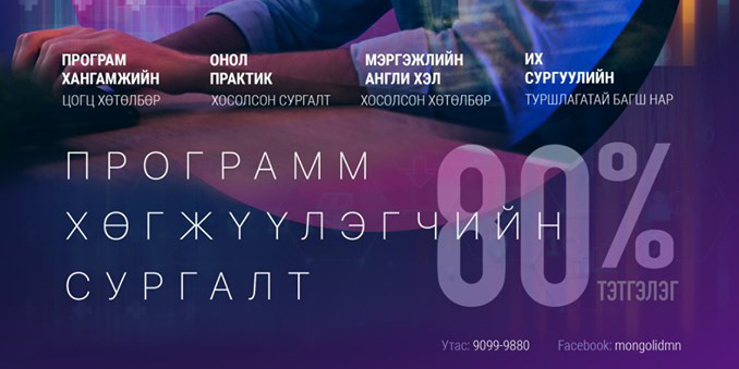 Орчин цагийн хамгийн эрэлттэй мэргэжлүүдийн нэг болох программ хангамжийн инженер бэлтгэх зорилгоор Нийслэлийн Засаг даргын Тамгын газраас “10,000 программист” төслийг санаачлан хэрэгжүүлж эхлээд байгаа билээ. Энэхүү төслийн хүрээнд мэдээлэл технологи, финтекийн чиглэлээр үйл ажиллагаа явуулдаг “Монгол Ай Ди” ХХК-ийн зүгээс өөрсдийн нөөц бололцоондоо тулгуурлан мэргэжлийн өндөр түвшний ур чадвар бүхий программист бэлтгэх 7 сарын эрчимжүүлсэн сургалтыг эхлүүлэхээр бэлтгэл ажлыг ханган ажиллаж байна.